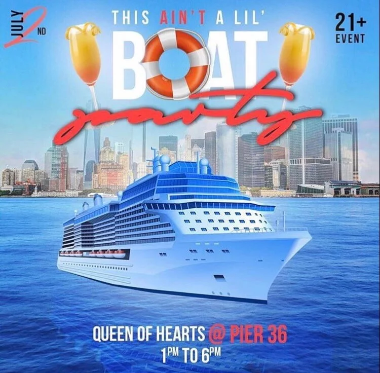 Shout out to Yachty but "This Aint A Lil Boat" you will be partying on! It's going to be a hot & beautiful July day on the Queen of Hearts as you sail off from Pier 36 along the East river. There will be OPEN BAR in the first hour, HOOKAH on the deck, and music throughout the boat. For more information, please click here.