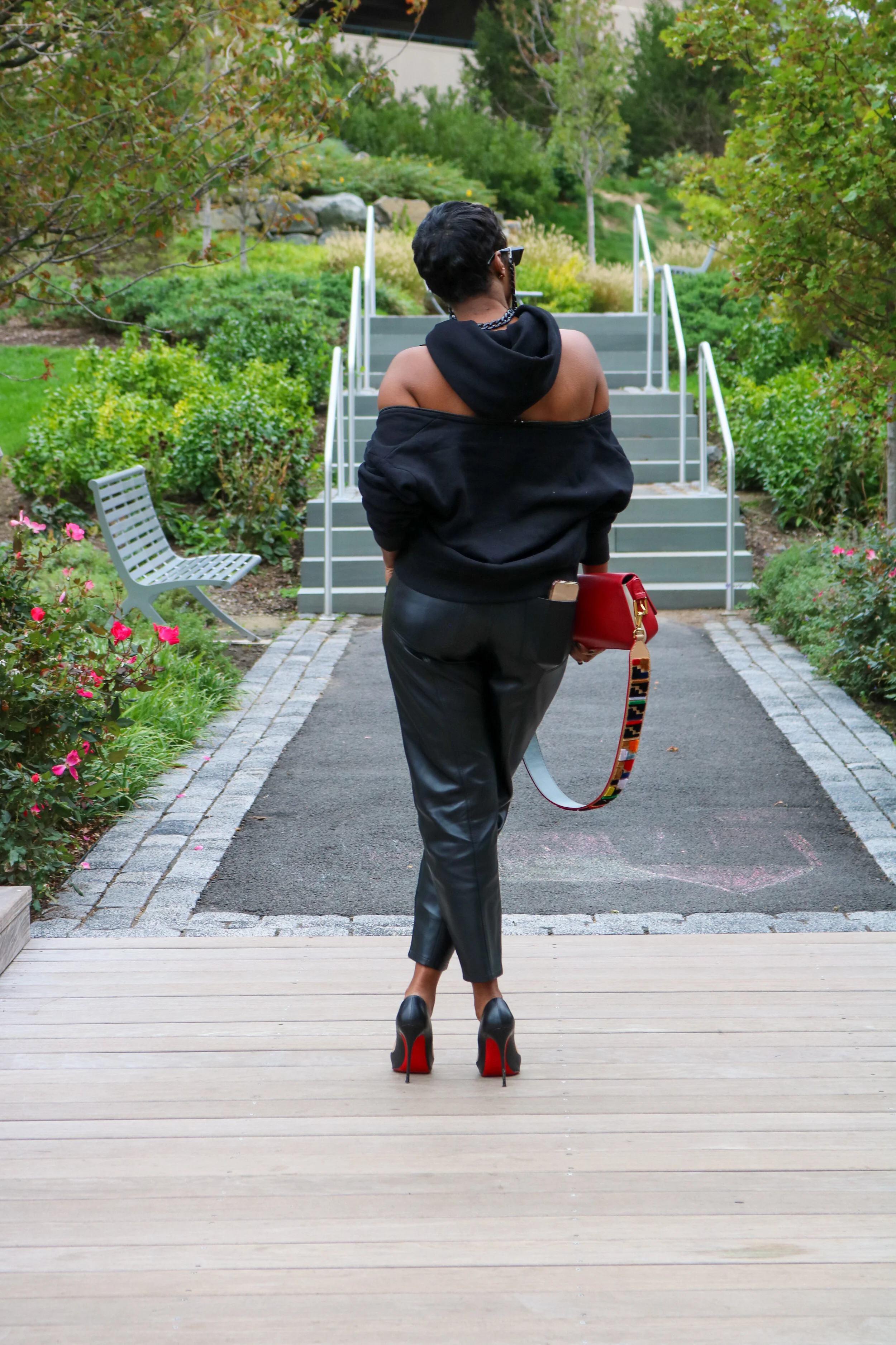 Yea...yea...I know talked about hoodies in my last post, however, it’s getting cold outside and hoodies are still at the top of my “go to” list. Who says hoodies have to be boring? Today, hoodies come in a variety of styles and can be worn in many different ways. Lets start with the obvious since it’s fall! Yes...you guessed it, pair the hoodie with leather pants! A hoodie and leather pants are the perfect ensemble when you have no time to think an outfit. It is the perfect look for those who like comfort and style. Besides leather pants, hoodies can be worn with jeans, joggers, shorts and skirts. For a sophisticated look, pair the hoodie with a pencil skirt. Additionally, hoodies can be worn under blazers, denim and leather jackets. Did I leave anything out? Well if I did, add it to the list because you can pair a hoodie with many different outfits. So what foot wear do you pair with these different variations? Your options are endless. For a dressier look, pair your ensemble with black pumps or high heel boots. For a dress down look, pair your outfit with sneakers. I opted for a stylish cold shoulder hoodie and paired it with faux leather pants and black pumps. Guess what? I am taking orders for this hoodie. If interested, click on the shop button.